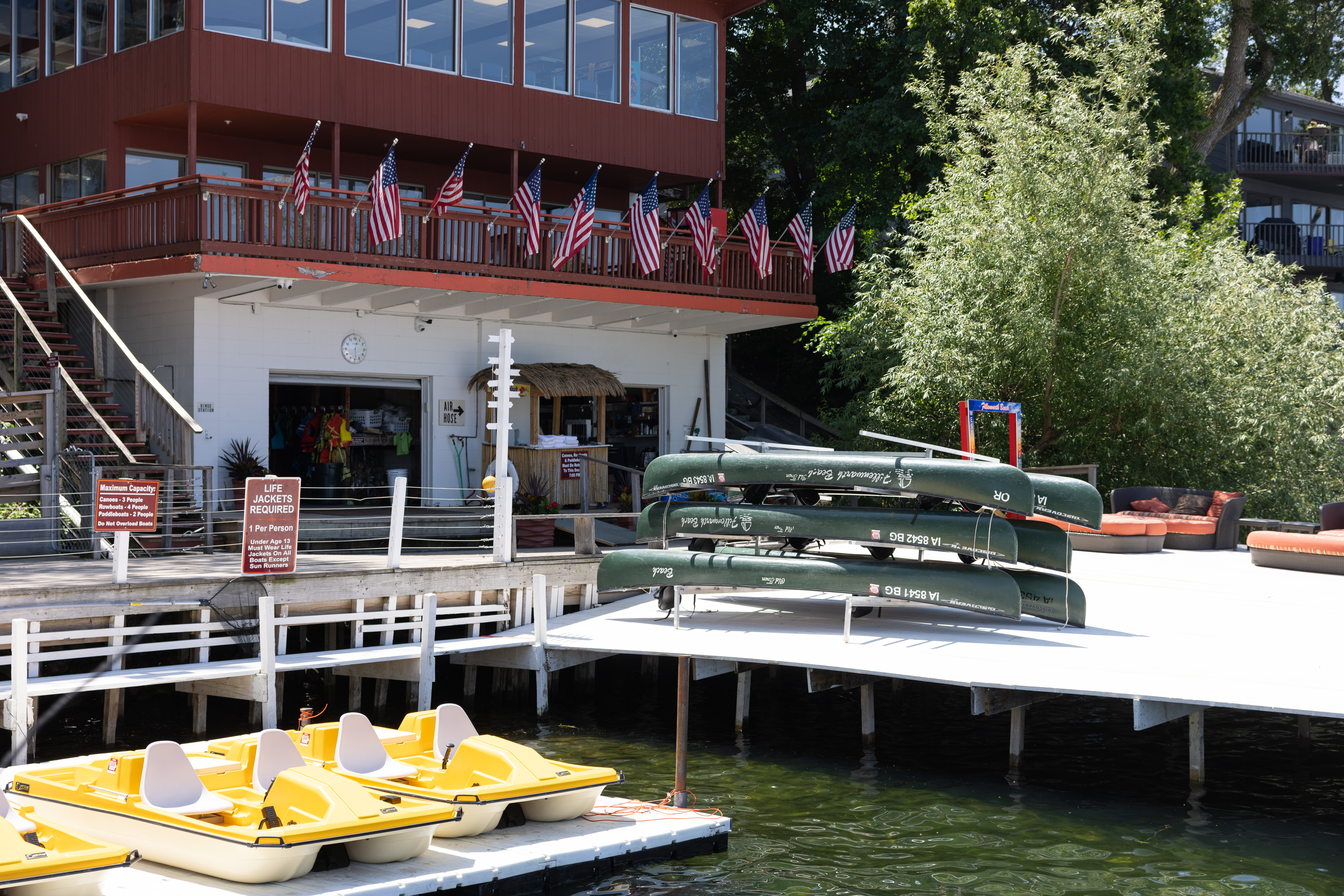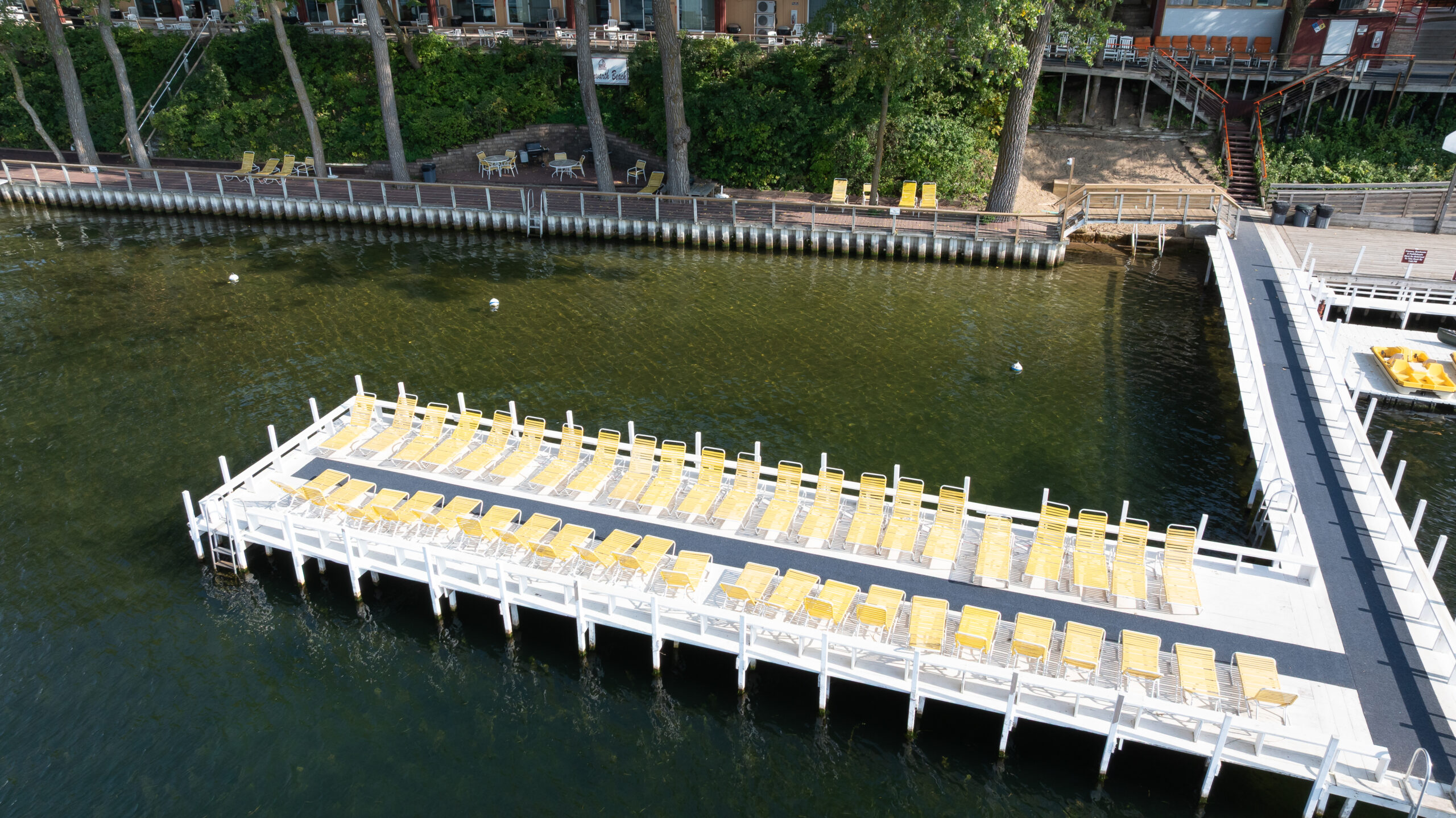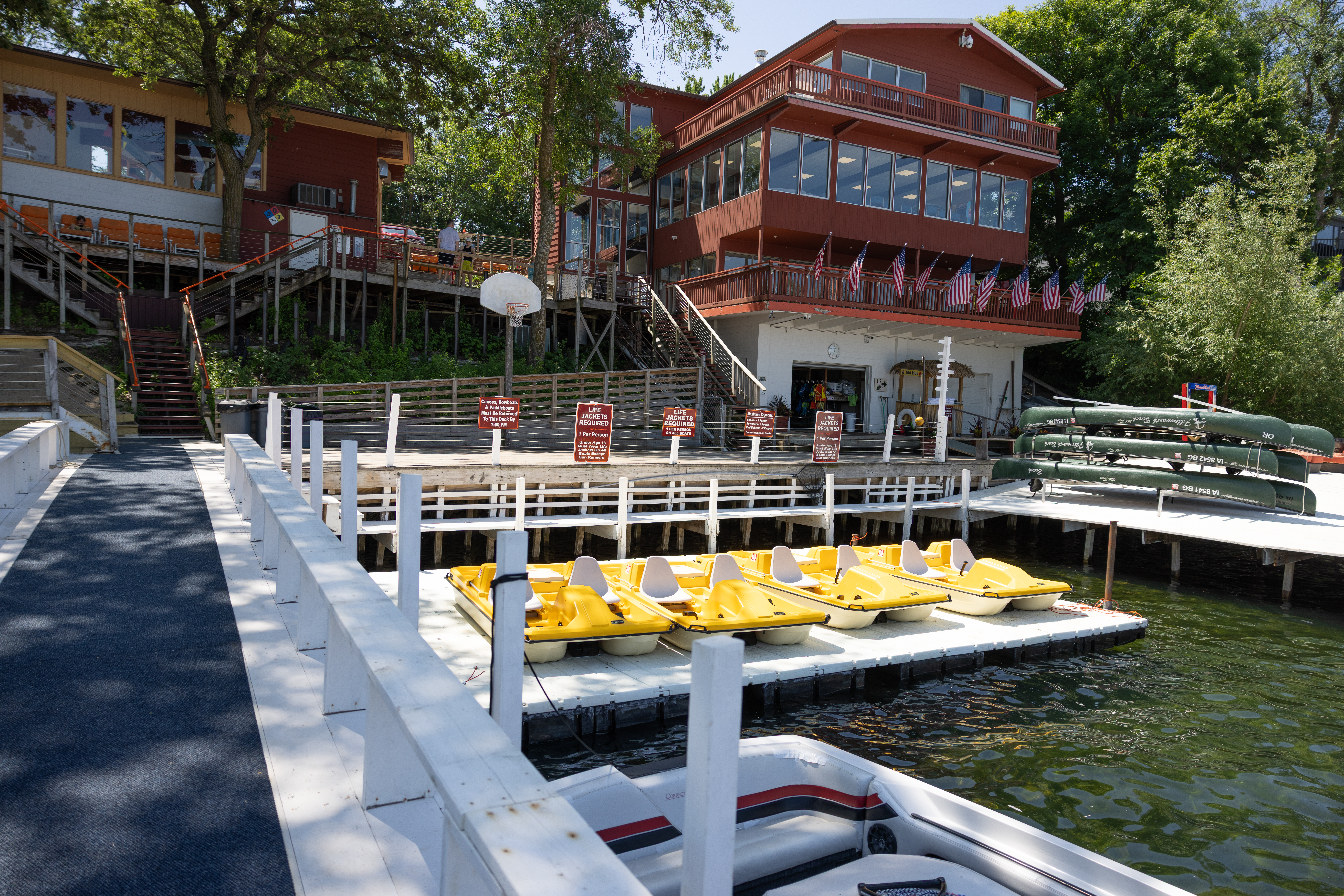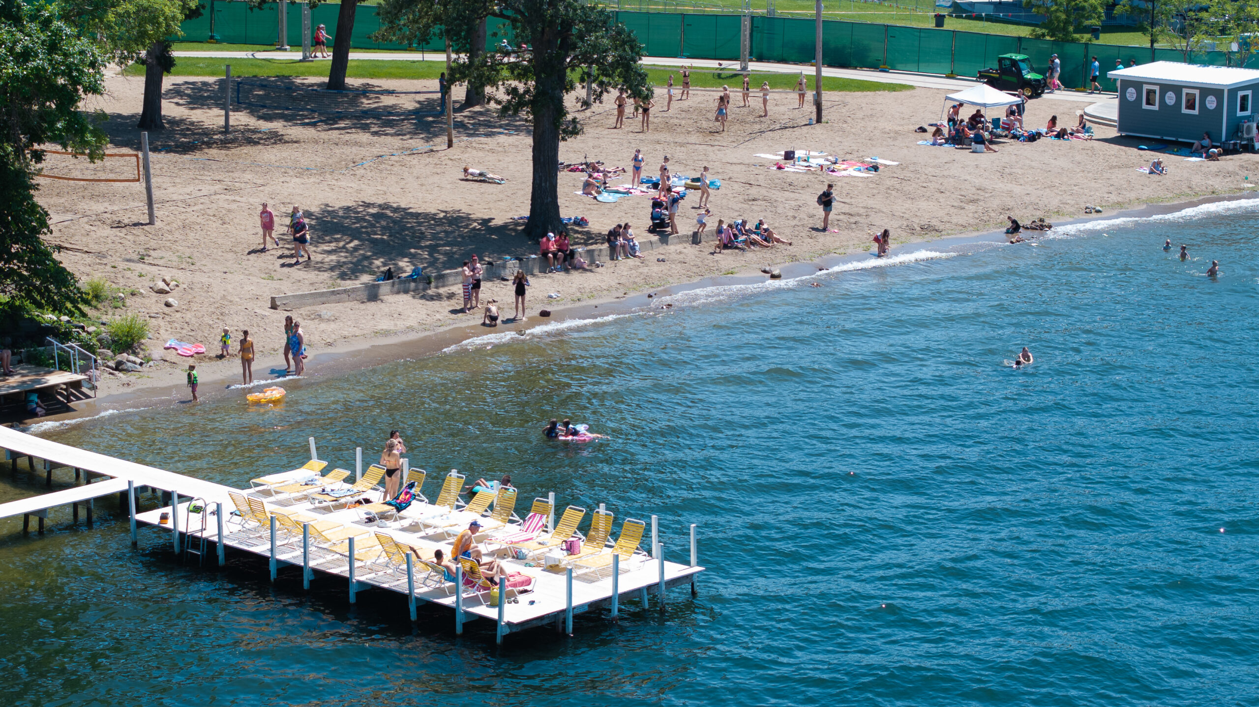 We have several docks and beach areas that are accessible to all of our guests. The Main Beach Dock is next to the office and is Lake Okoboji’s largest dock. There you will enjoy our 20′ man-made beach, protected swimming area, swim platform, and our many lounge chairs. All boat rides and water skiing depart from our Main Beach Dock.