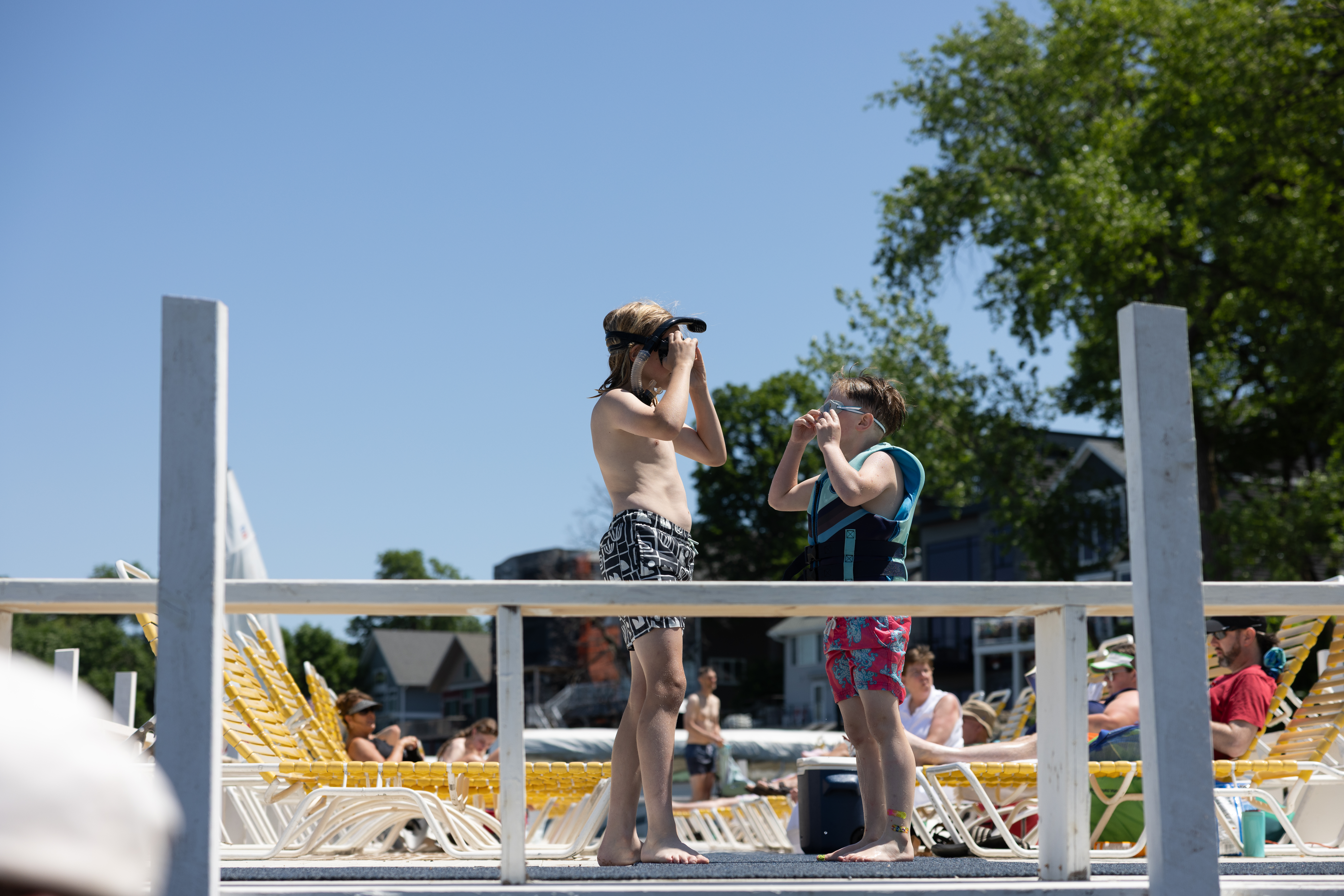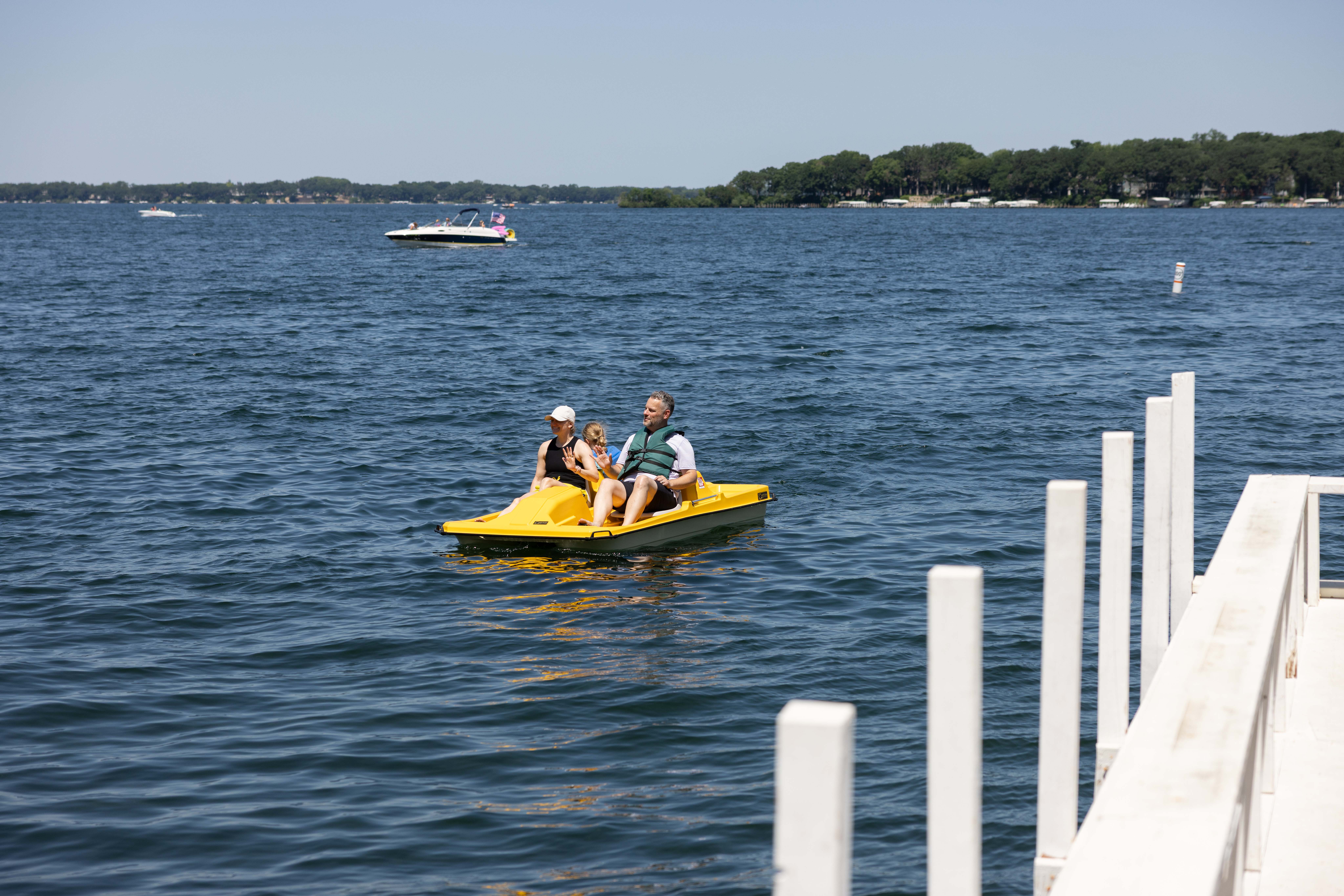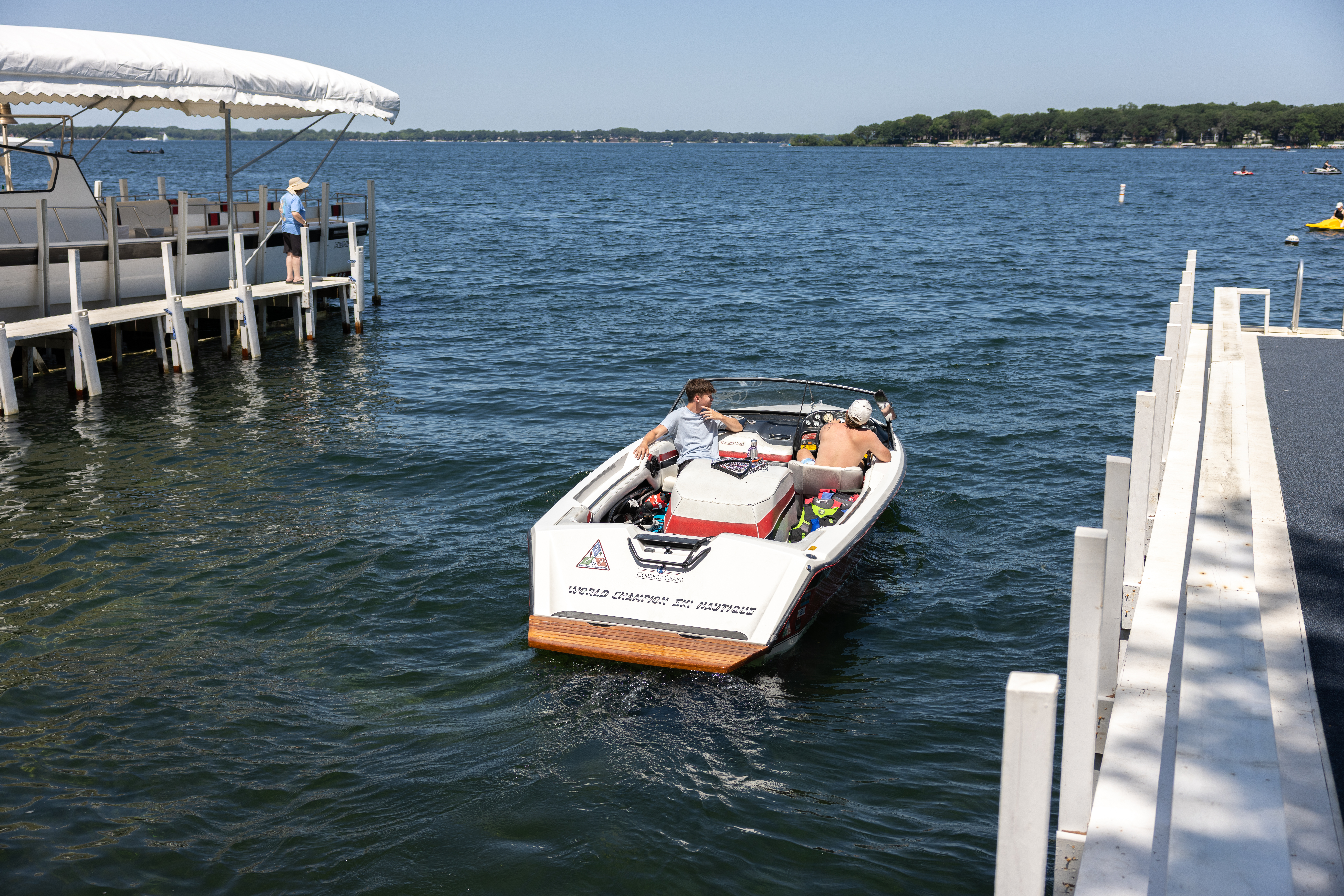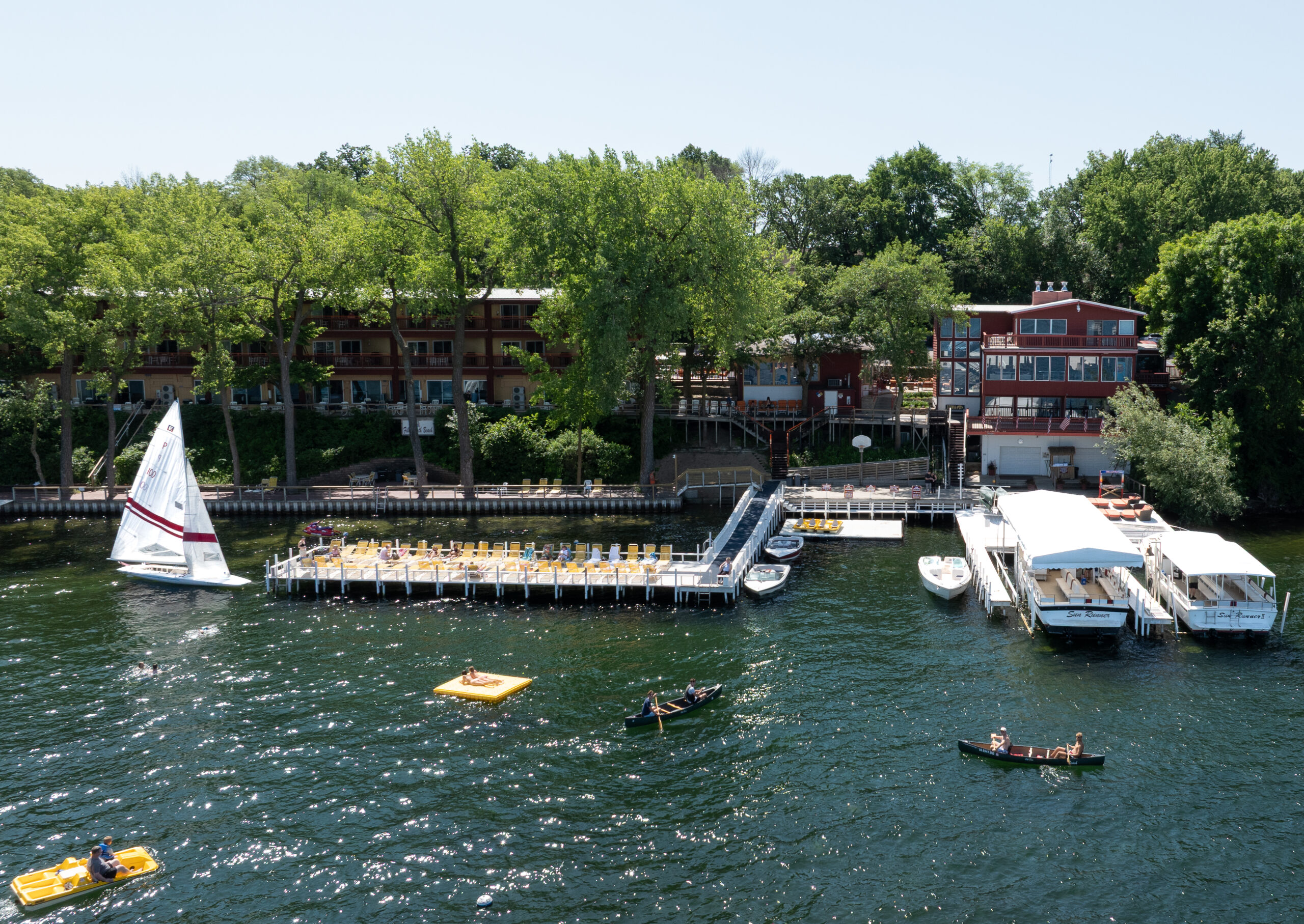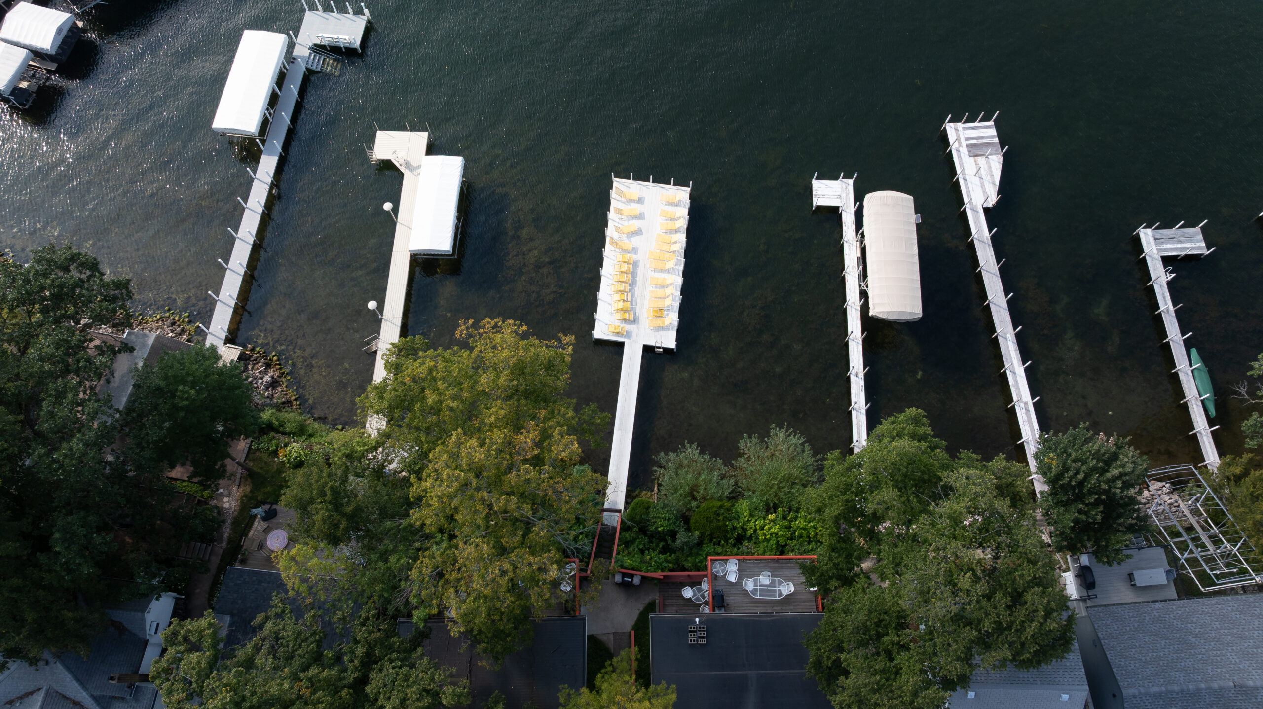 We have several docks and beach areas that are accessible to all of our guests. The Main Beach Dock is next to the office and is Lake Okoboji’s largest dock. There you will enjoy our 20′ man-made beach, protected swimming area, swim platform, and our many lounge chairs. All boat rides and water skiing depart from our Main Beach Dock.