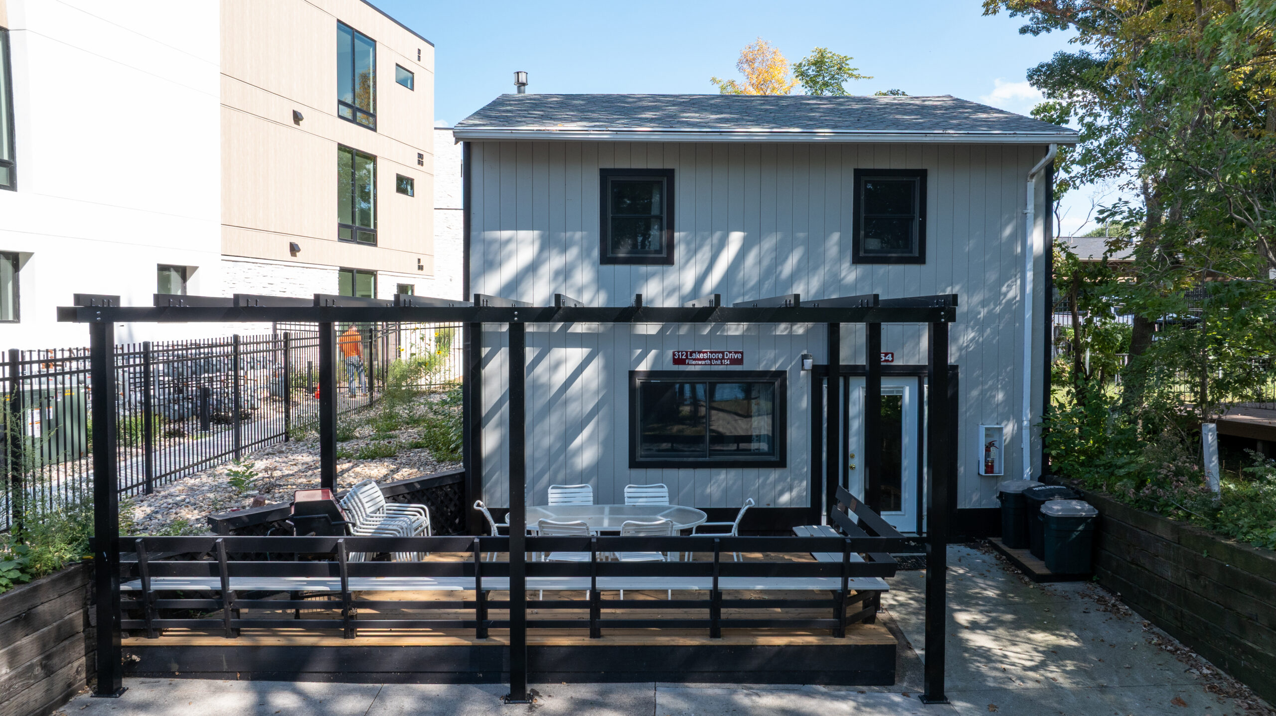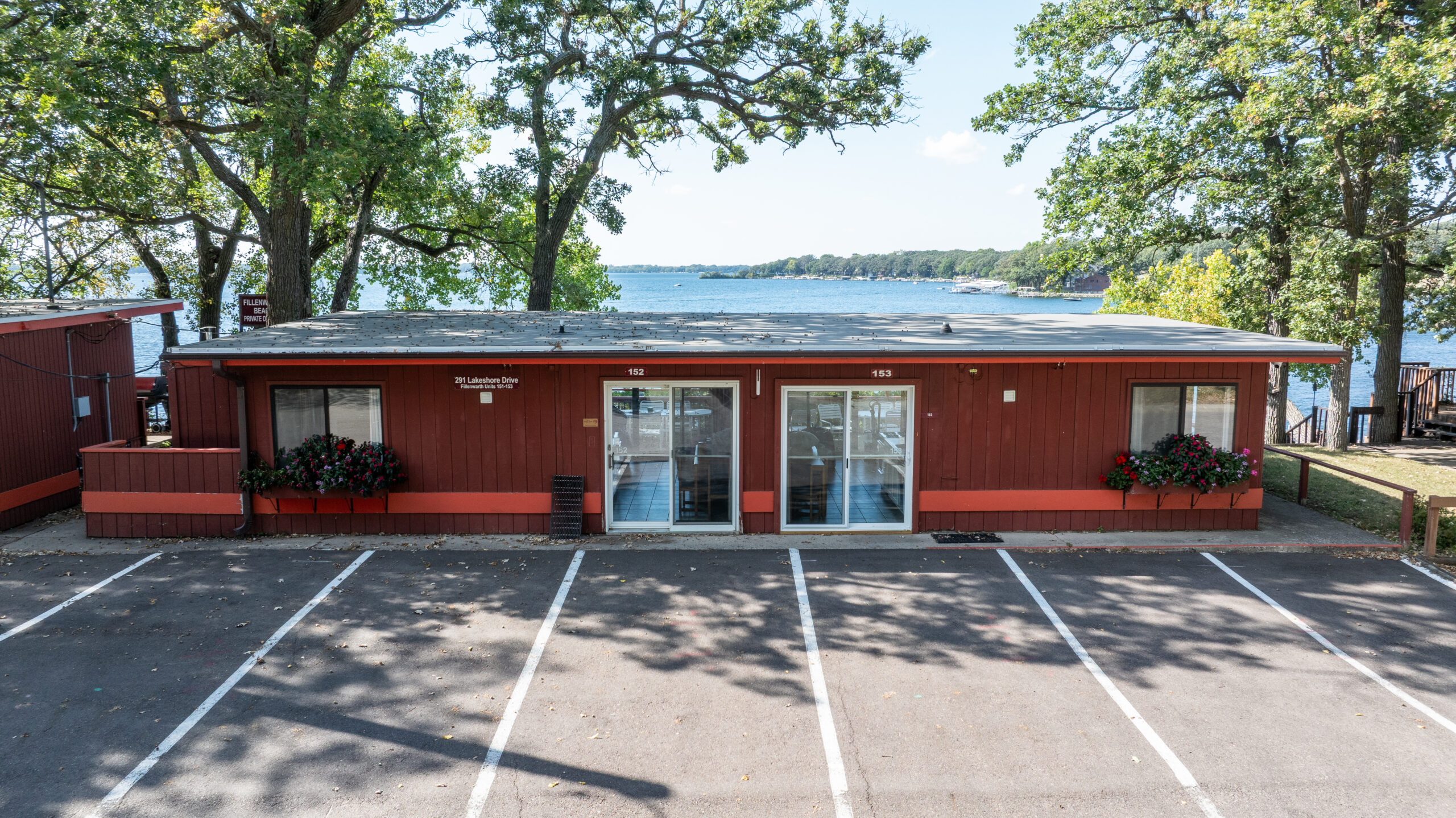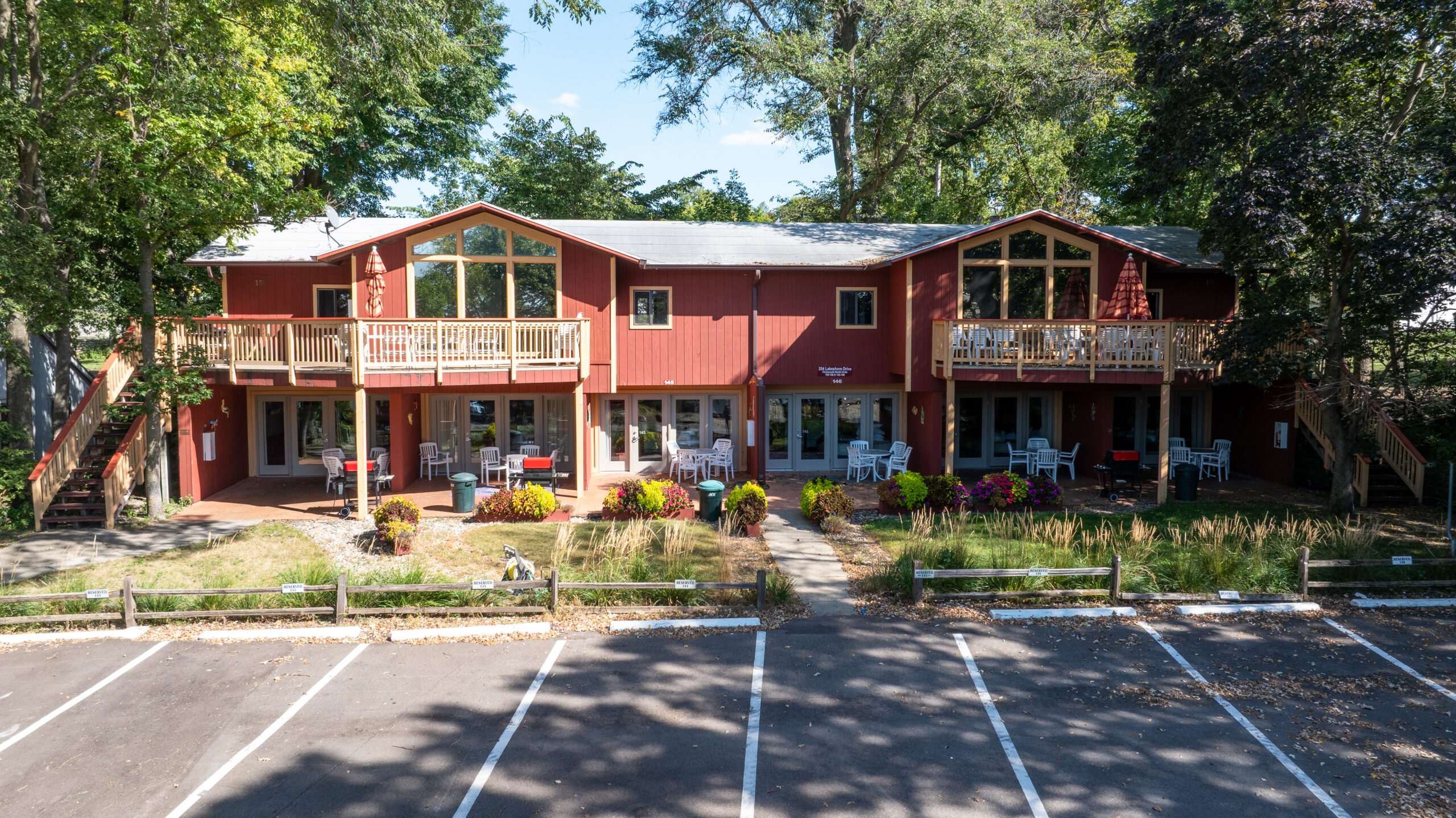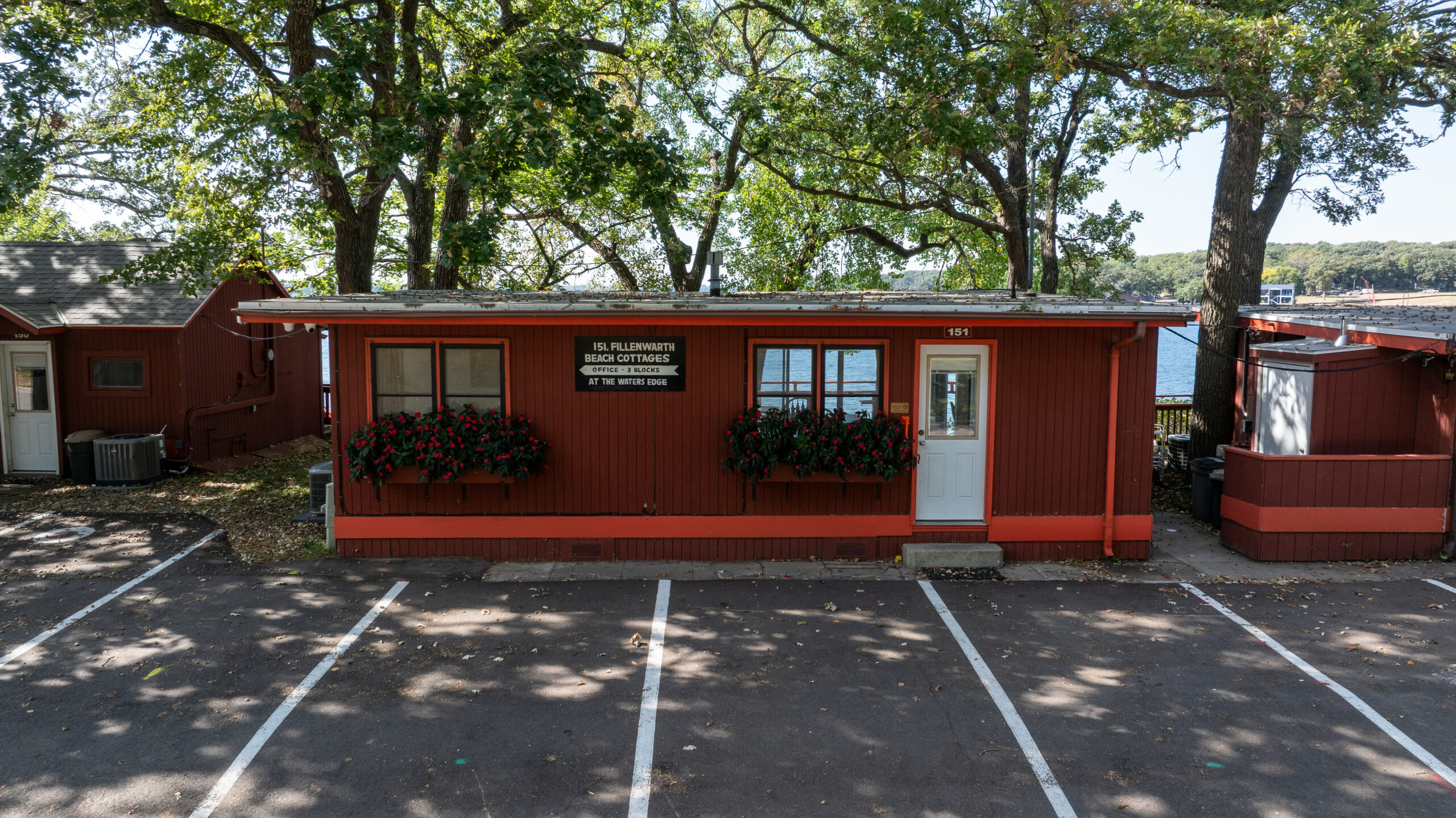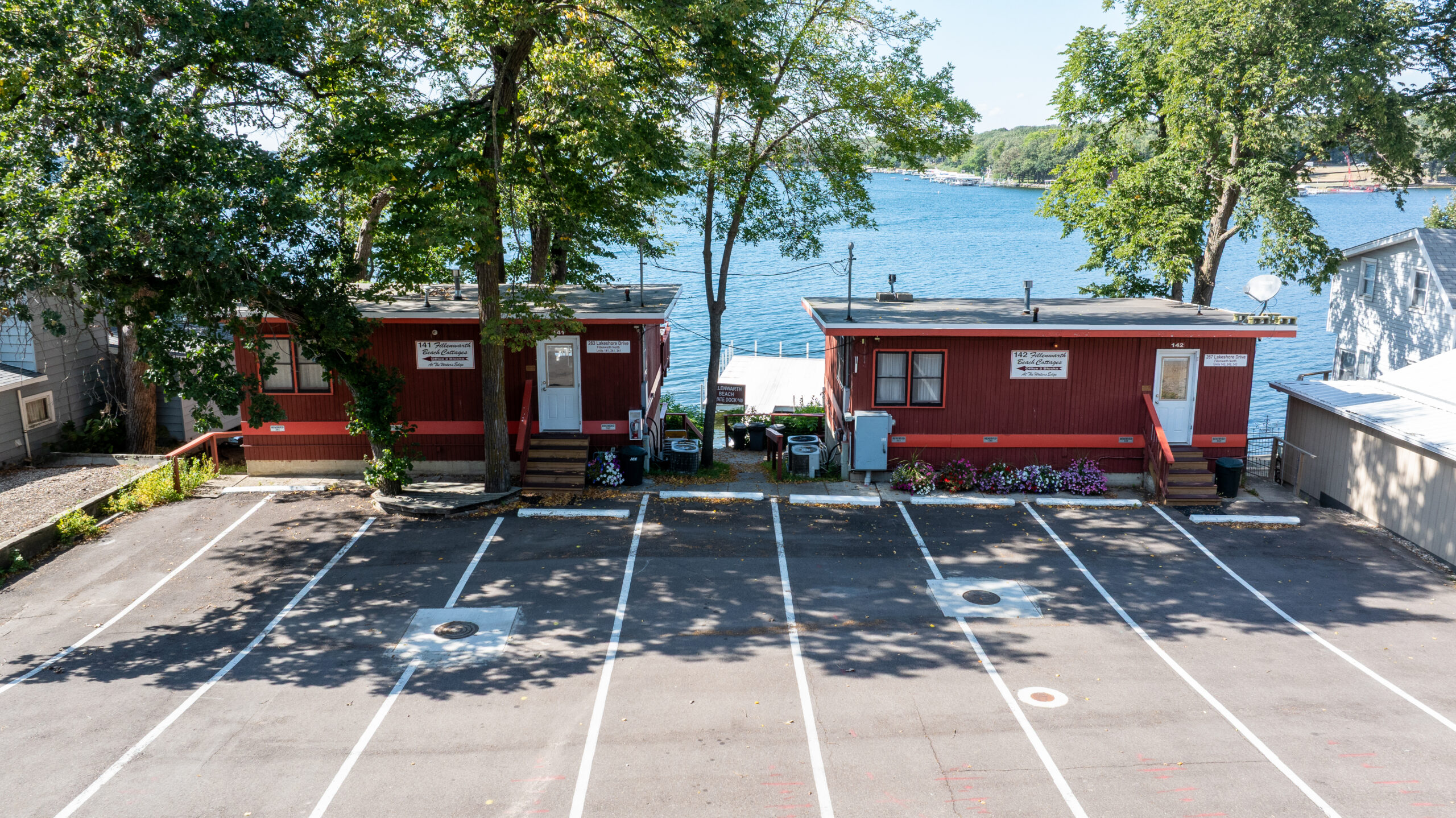 These lakefront units have two bedrooms – one with a queen bed, one with two queen beds – and a long double bed and sofa sleeper in the living/dining/kitchen area. There is one bathroom with the toilet and lavatory in one room, the tub/shower in another room, and an extra lavatory. There is a lakeside private patio with gas grill.